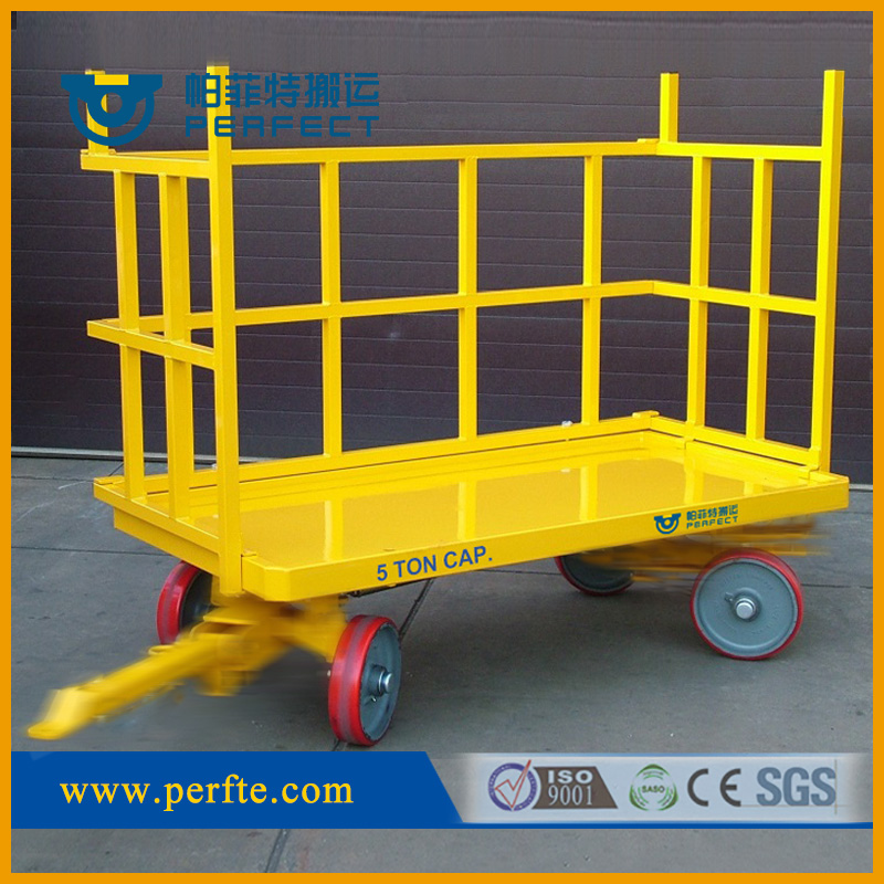1.無(wú)軌牽引拖車(chē)的載重量、主要外形尺寸可根據(jù)客戶的需求定制。 2.無(wú)軌牽引拖車(chē)的車(chē)架為梁式結(jié)構(gòu),抗彎性能好,承載能力強(qiáng)、車(chē)體不易下彎,有效的避免了車(chē)架臺(tái)面的變形,極大的延長(zhǎng)了使用壽命。 3.無(wú)軌牽引拖車(chē)的車(chē)臺(tái)面配有插裝孔,可以運(yùn)輸圓鋼,圓木等圓柱體貨物。 4.無(wú)軌牽引拖車(chē)的車(chē)輪為自主研發(fā)的專(zhuān)用車(chē)輪,車(chē)輪輪轂采用鑄鋼材料機(jī)械加工而成,外加軟橡膠處理,有效緩解重載荷產(chǎn)生的沖擊,同時(shí)也大大的保護(hù)了車(chē)輪對(duì)地面的損傷,車(chē)輪也不會(huì)在廠房地面留下輪胎痕跡。 5.無(wú)軌牽引拖車(chē)車(chē)輪全部采用密封處理,物料搬運(yùn)不