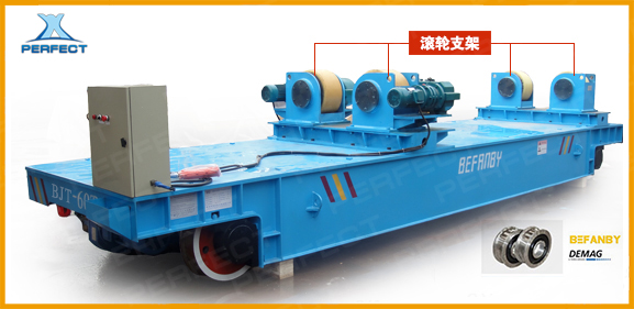是一種特制的軌道運輸工具車,主要應(yīng)用于焊接、探傷、生產(chǎn)線等工況,該車型分為兩種,一種在臺面上加裝特制的滾輪支架,用來調(diào)節(jié)所運載物料角度,以方便對接或切割。 另一種是臺面上平鋪滾輪支架的電動平車,臺面均勻鋪設(shè)一層滾輪,由電機(jī)鏈條帶動滾輪傳動,運載物料。方便將物料從電動平車臺面?zhèn)魉偷綄拥墓の簧稀?
